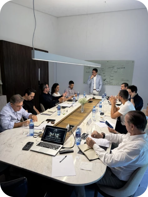 Formato presencial premium, no modelo de conselho estratégico aplicado.